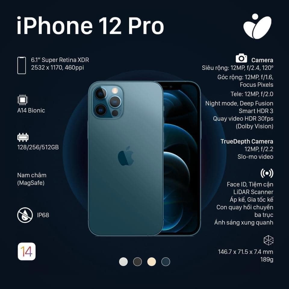 Apple là nhà sản xuất điện thoại thông minh hàng đầu hiện nay. Trong nhiều năm qua, công ty liên tục thống lĩnh thị trường với doanh số bán khổng lồ và doanh thu kỷ lục. Các sản phẩm mang thương hiệu Apple luôn được người dùng đón nhận và tin tưởng nhờ thiết kế dẫn đầu xu hướng và hiệu năng bền bỉ theo thời gian. Trong đó, dòng điện thoại iPhone là sản phẩm chủ lực góp phần làm nên ngôi vị vững chắc của Apple trên thị trường. Năm 2020, Apple chính thức công bố dòng iPhone 12 Series thế hệ mới với 4 phiên bản. Trong đó iPhone 12 Pro 128GB chính hãng VN/A được rất nhiều người dùng lựa chọn. Cùng khám phá xem chiếc iPhone 12 Pro 128GB năm nay có những điểm đáng giá nào!